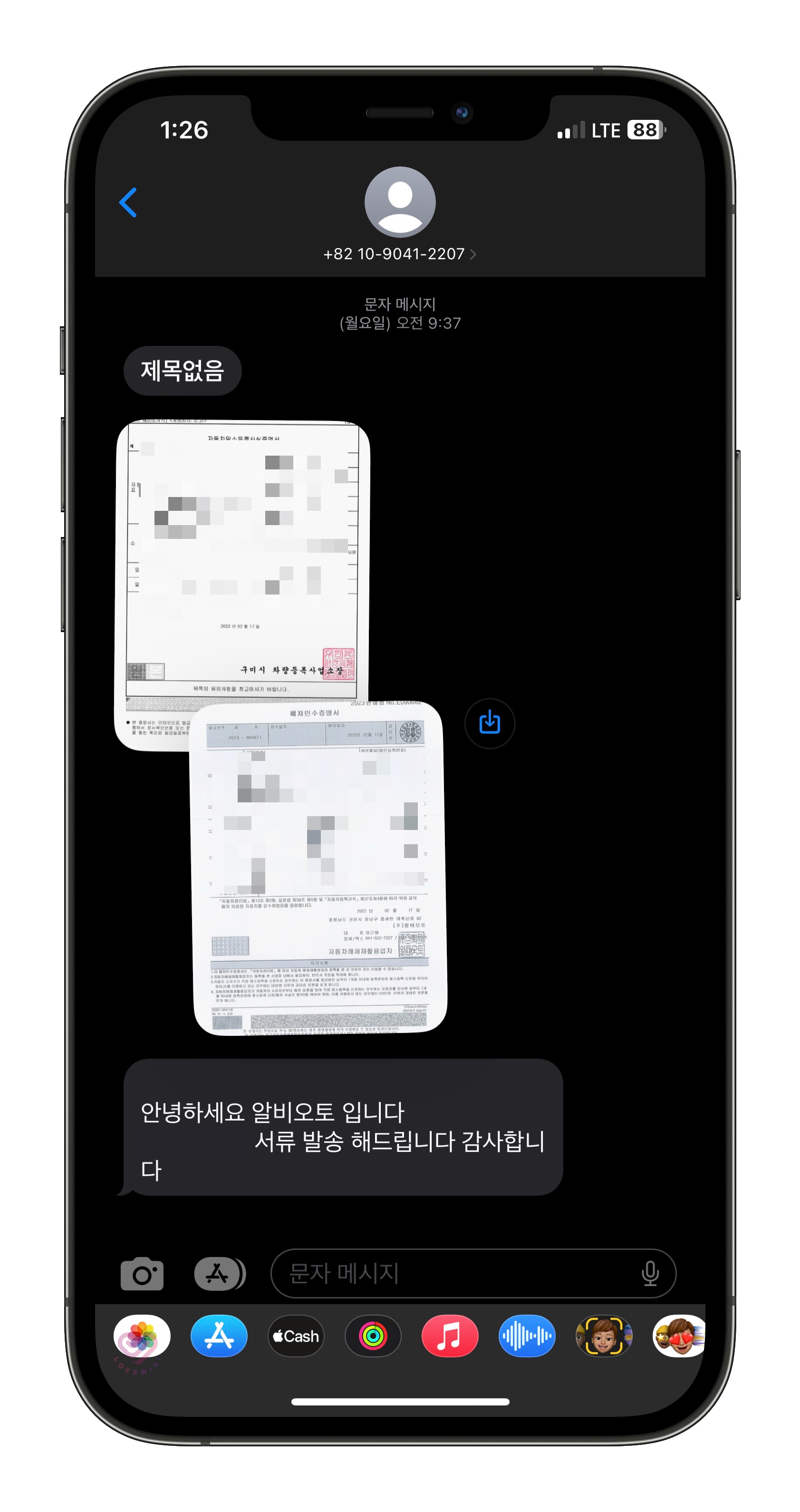 15일 (사고3일차) 폐차 업체 에서 차를 수거했고 그전에 저는 차량에 남아 있는 짐들과 서류들을 빼놓았습니다. 차안에는 차량등록증만 남겨 놓았고, 문자를 통해 폐차 업체에 신분증을 제출 했습니다. 그렇게 다음주 월요일 20일에서야 자동차말수등록사실증명서와 폐차 인수 증명서를 전달받았습니다.