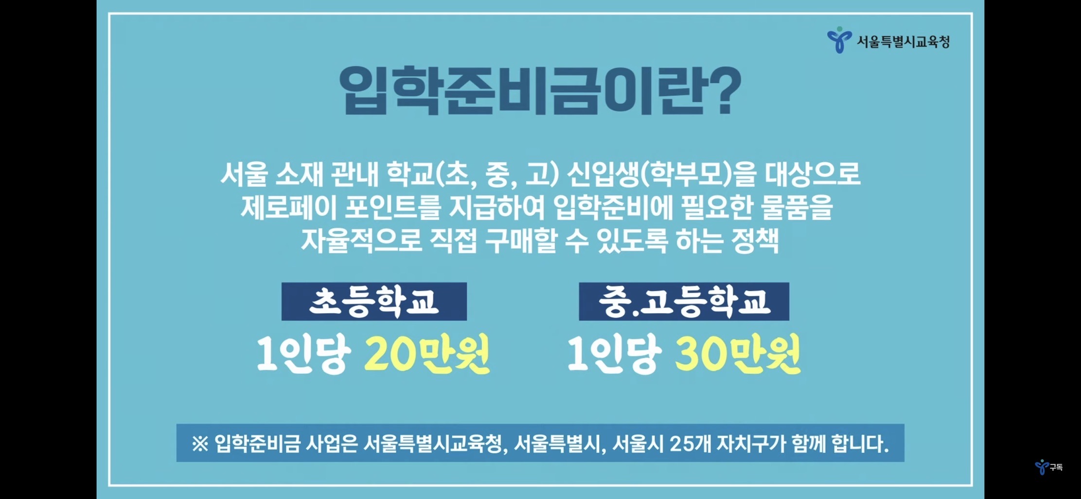 서울 초중고 신입생 입학준비금 신청 방법 대상과 금액 정리!