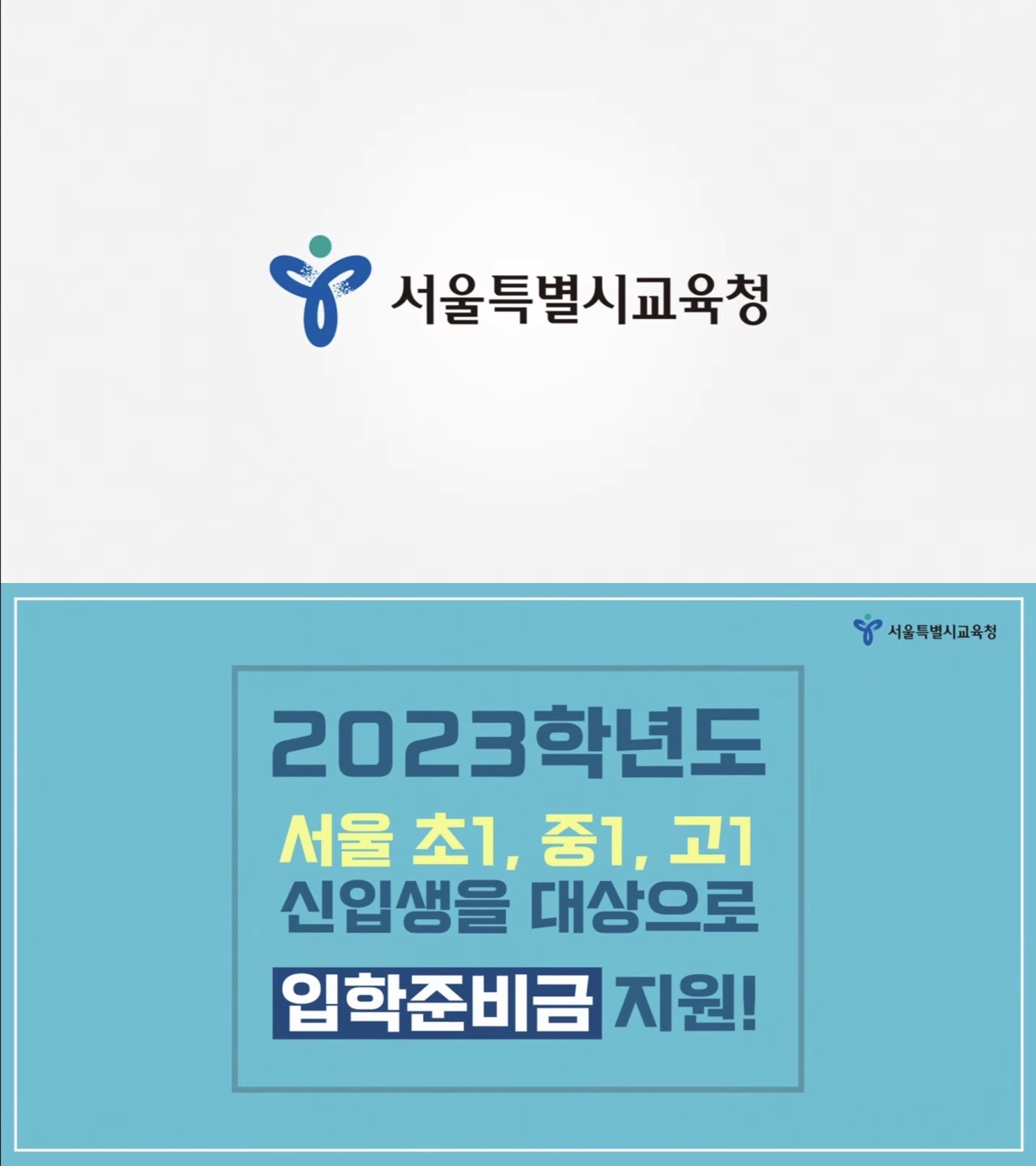 올해 2023년 3월 초등학교, 중학교, 고등학교에 입학하는 자녀를 둔 부모님들은 잊지 말고 입학준비금을 신청하시면 되는데요. 서울시 교육청 에서 2월 2일부터 7일 까지 중학생, 고등학생, 20일부터 23 일 까지는 초등학생 입학준비금 신청을 받습니다. 신청 후에는 대상자를 확인해 내달 중 지급할 예정이며, 집중 신청기간을 놓쳤더라도 별도 안내에 따라 내달 3월에도 신청을 할 수 있다고 합니다.